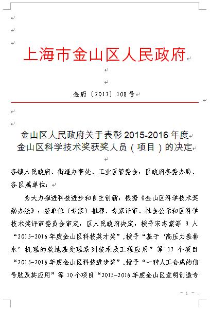 熱烈祝賀宋志棠董事長榮獲2015-2016年度金山區(qū)科技英才獎