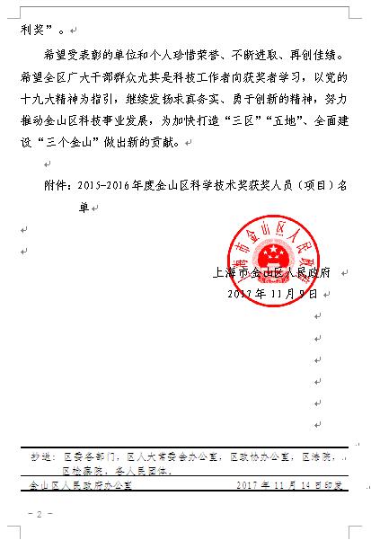 2017.11.09熱烈祝賀宋志棠董事長榮獲2015-2016年度金山區(qū)科技英才獎